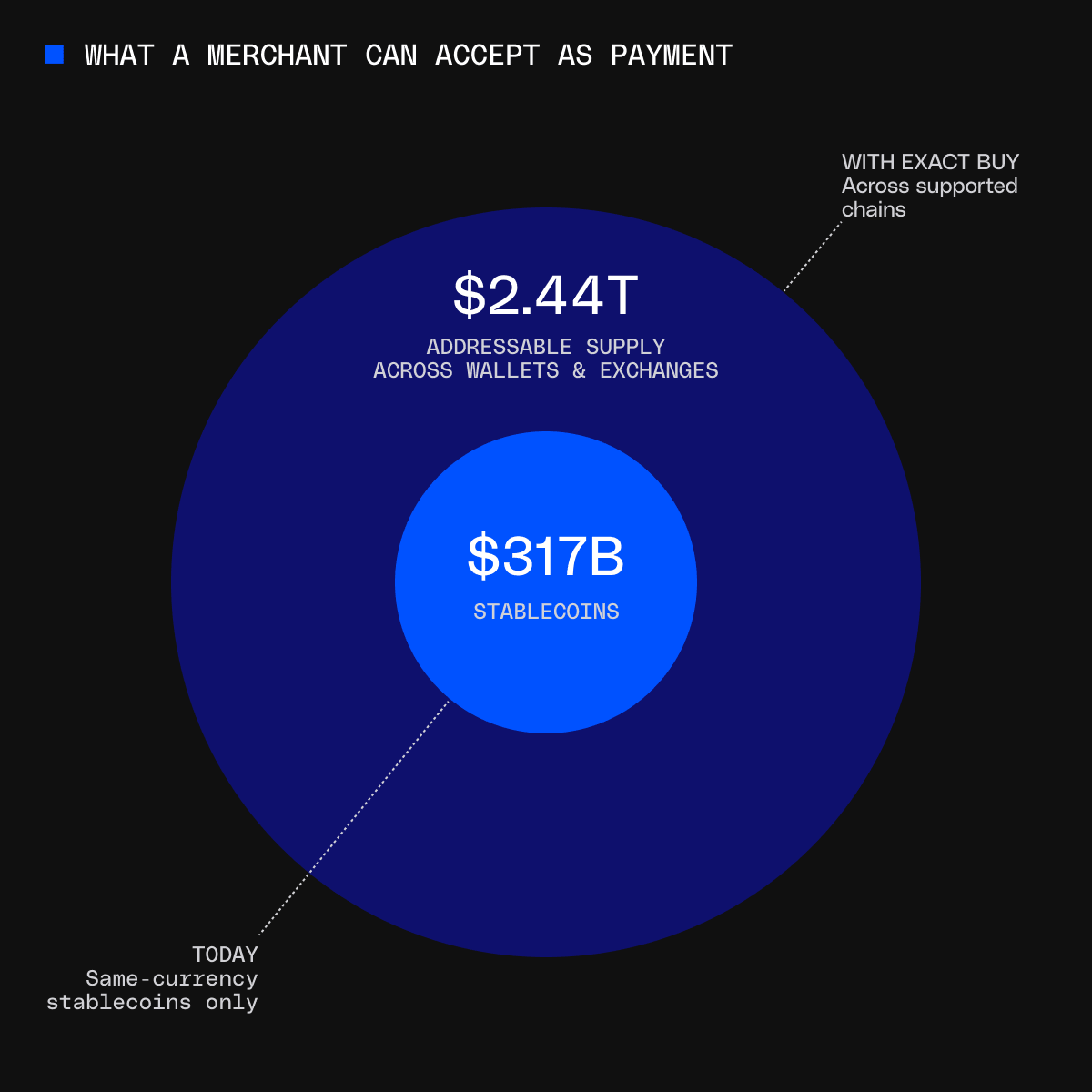 This is the problem 0x solves with Exact Buy. 0x enables guaranteed-output swaps, where payment providers get exact merchant settlement without building the estimation, slippage handling, or fallback logic themselves. When combined with our advanced routing & deep onchain liquidity the result unlocks a truly advanced payments experience: